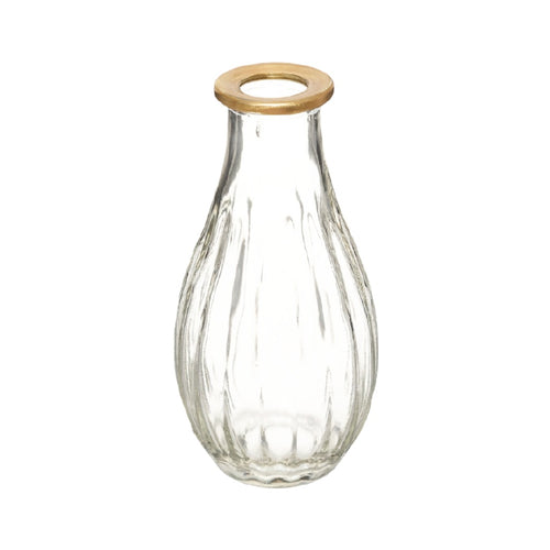 Clear Glass Vase with Wooden Rim – Elegant Decorative Centerpiece